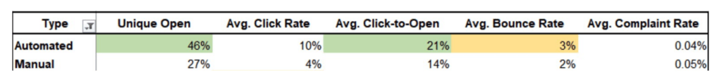 A big advantage is also that according to a survey by emfluence Marketing Platform, automated emails perform much better than manually sent emails.
